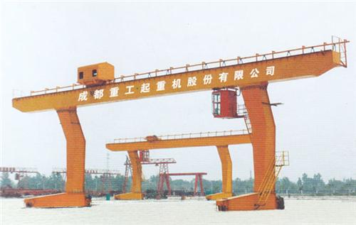門式起重機是橋式起重機的一種變形,又叫龍門吊。主要用于室外的貨場、料場貨、散貨的裝卸作業(yè)。它的金屬結(jié)構(gòu)像門形框架,承載主梁下安裝兩條支腳,可以直接在地面的軌道上行走,主梁兩端可以具有外伸懸臂梁。門式起重機具有場地利用率高、作業(yè)范圍大、適應(yīng)面廣、通用性強等特點,在港口貨場得到廣泛使用。